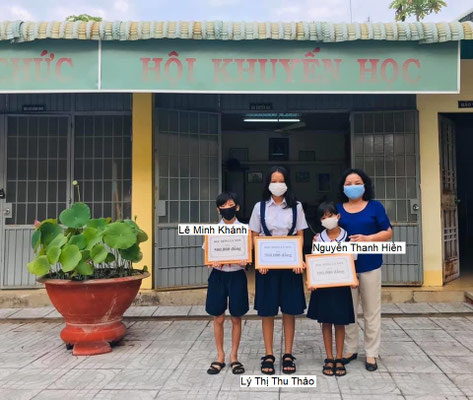 5) Võ Thị Tường Vy, 4. Klasse, Grundschule Bình Mỹ, Củ Chi, Halbwaise, ihr Vater arbeitet in einer Fabrik, die Räucherstäbchen herstellt, derzeit wegen Corona Arbeitspause erhält 500.000 VND Unterstützung von der Fabrik.