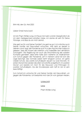 Verteilung der Corona-Hilfe und ein Dankesbrief von Bao Long.